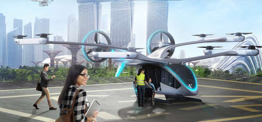 This new aircraft concept results from a broad range of tests and simulations, aiming at operational optimisation for the urban environment, considering high reliability, low operating costs, a lower noise footprint, fully electric powered and progressively autonomous.